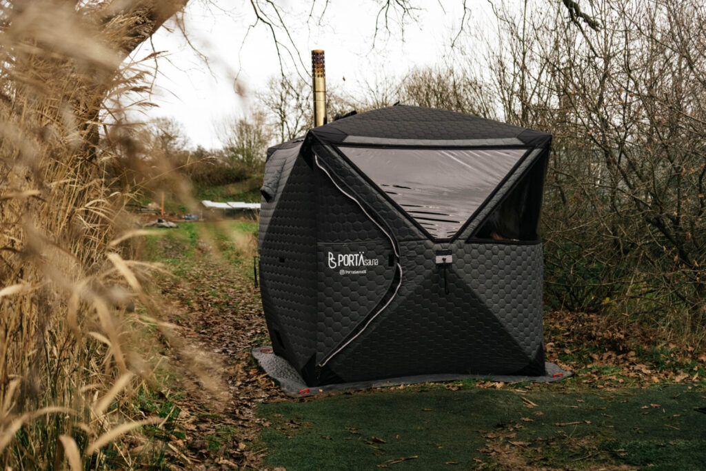 Explore the brand and full specifications here: PortaSauna, and the product detail page here: PortaSauna HEX wood-fired sauna tent.
