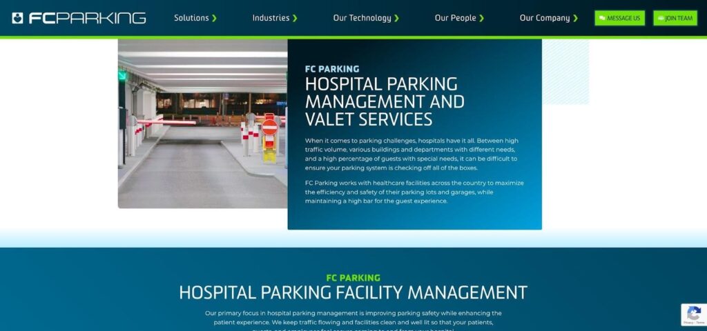 FC Parking hospital valet services healthcare landing page screenshot.
