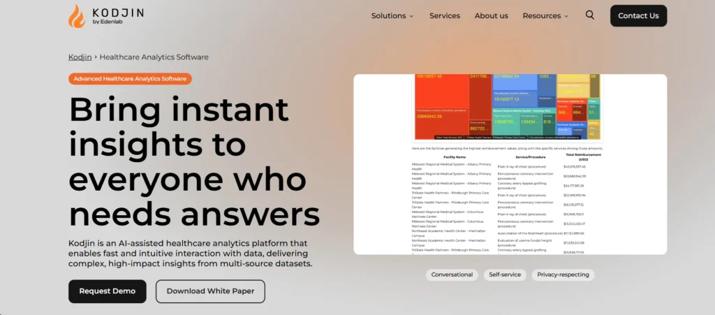 Kodjin is the right call for health systems operating across multiple EHR environments, digital health companies building FHIR-compliant data products, and clinical informatics teams that need a healthcare analytics platform capable of answering questions that rigid BI dashboards can’t formulate. Organizations running real-world evidence programs, multi-site care coordination initiatives, or complex population health strategies will find Kodjin’s clinical depth hard to match elsewhere.