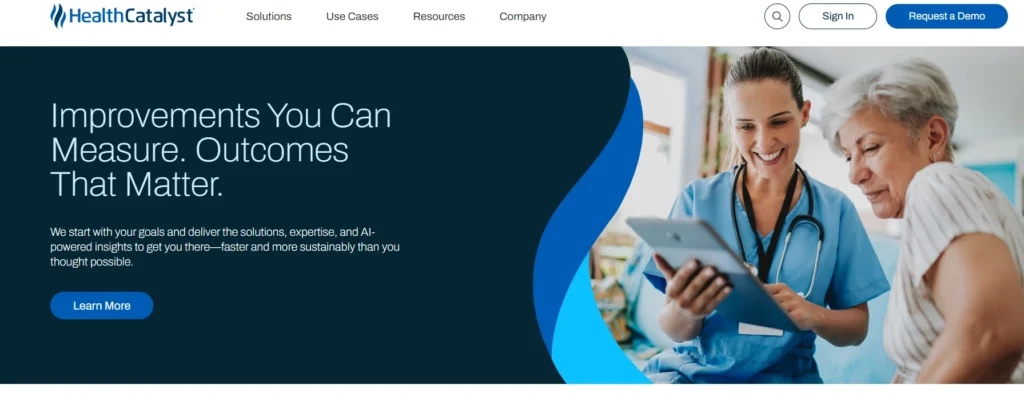 Health Catalyst has earned its position in large health system analytics through over a decade of consistent delivery. Its Data Operating System (DOS) functions as an enterprise data layer — aggregating clinical, financial, and operational information from across the organization, normalizing it, and making it available through pre-built analytics applications and open workspaces for custom analysis.