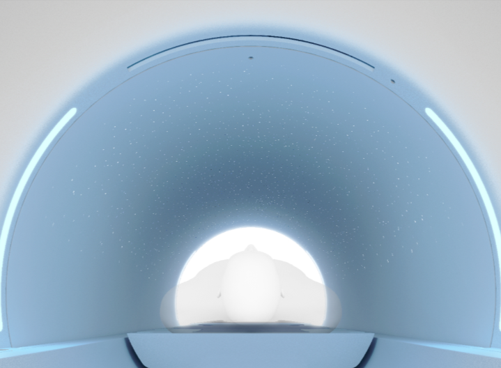 - The interior of the gantry has been designed to offer a unique environment that imitates a starry sky. Instead of a sterile, technical ceiling, the patient sees a calming view, which helps them relax and distract them from the medical procedure.