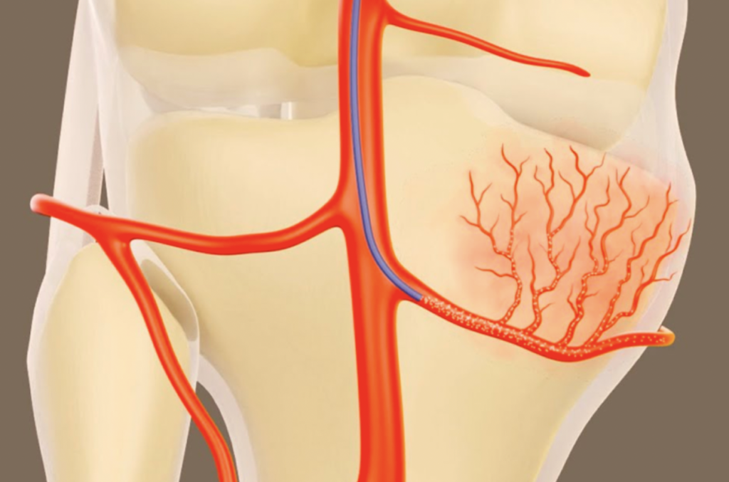 In patients with osteoarthritis, abnormal blood vessels can develop within the joint lining, contributing to inflammation and pain. GAE works by selectively reducing blood flow to these areas, which results in nerve pain fiber regression, which then reduces inflammation. By decreasing inflammation, the procedure can significantly improve pain, mobility, and overall quality of life.