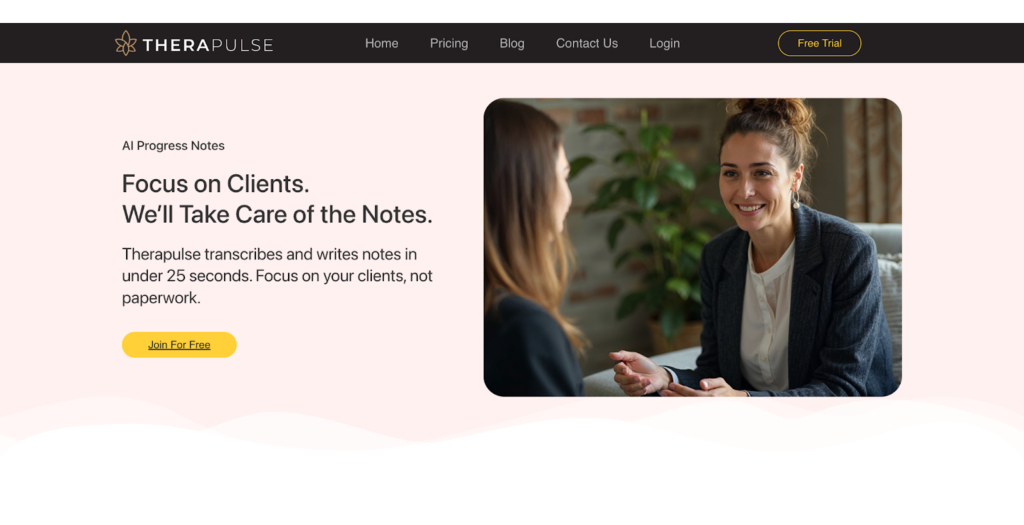 Therapulse is a transcription plus rapid AI note generation for mental health professionals, with outputs in DAP, SOAP, and BIRP.