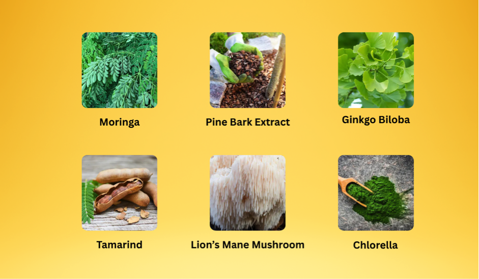 Ginkgo biloba is rich in antioxidants and helps support heart health. It helps reduce inflammation and promotes better brain functions. It has neuroprotective properties that help improve memory, boost blood circulation, and prevent neuronal damage.
