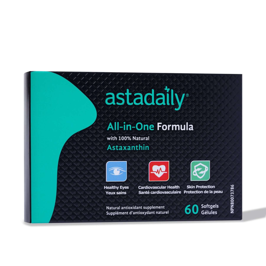 Astadaily is a Canadian brand focused on astaxanthin research and formulation, with nearly nine years of experience developing evidence-informed supplements for daily wellness. This all-in-one formula provides 12 mg of natural astaxanthin and combines it with supportive nutrients such as lutein, blueberry extract, and omega-3 fish oil to help support eye health, skin hydration, and overall antioxidant protection.